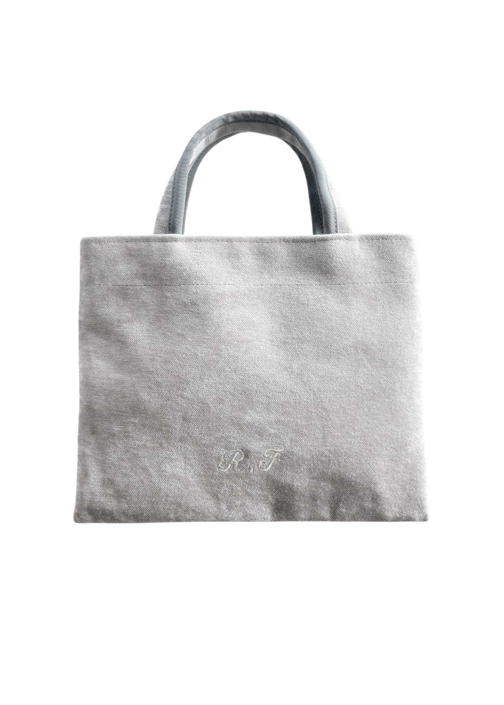 取手にはBIBI bag.らしい光沢感のグログランパイピングを。ちらっと見える裏地はチャコールグレーのグログラン生地。適度な厚みとハリが特徴です。