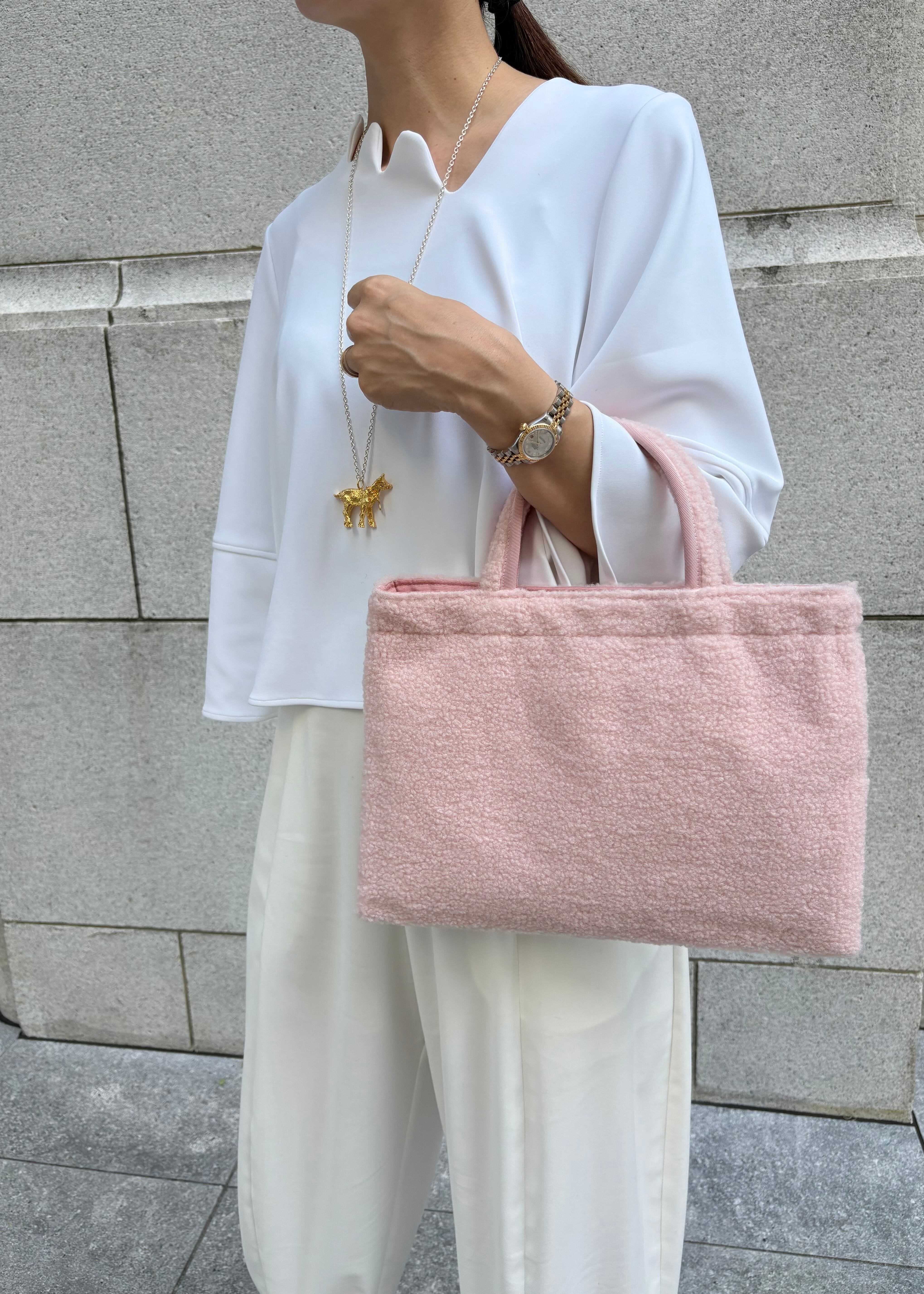存在感のある愛らしいふわもこボア。表情豊かなボアファブリックは、リラックス感と華やかさを兼ね備え、投入するだけで秋冬コーデを完成させてくれます。落ち着いたピンクは心踊る仕上がりに。
