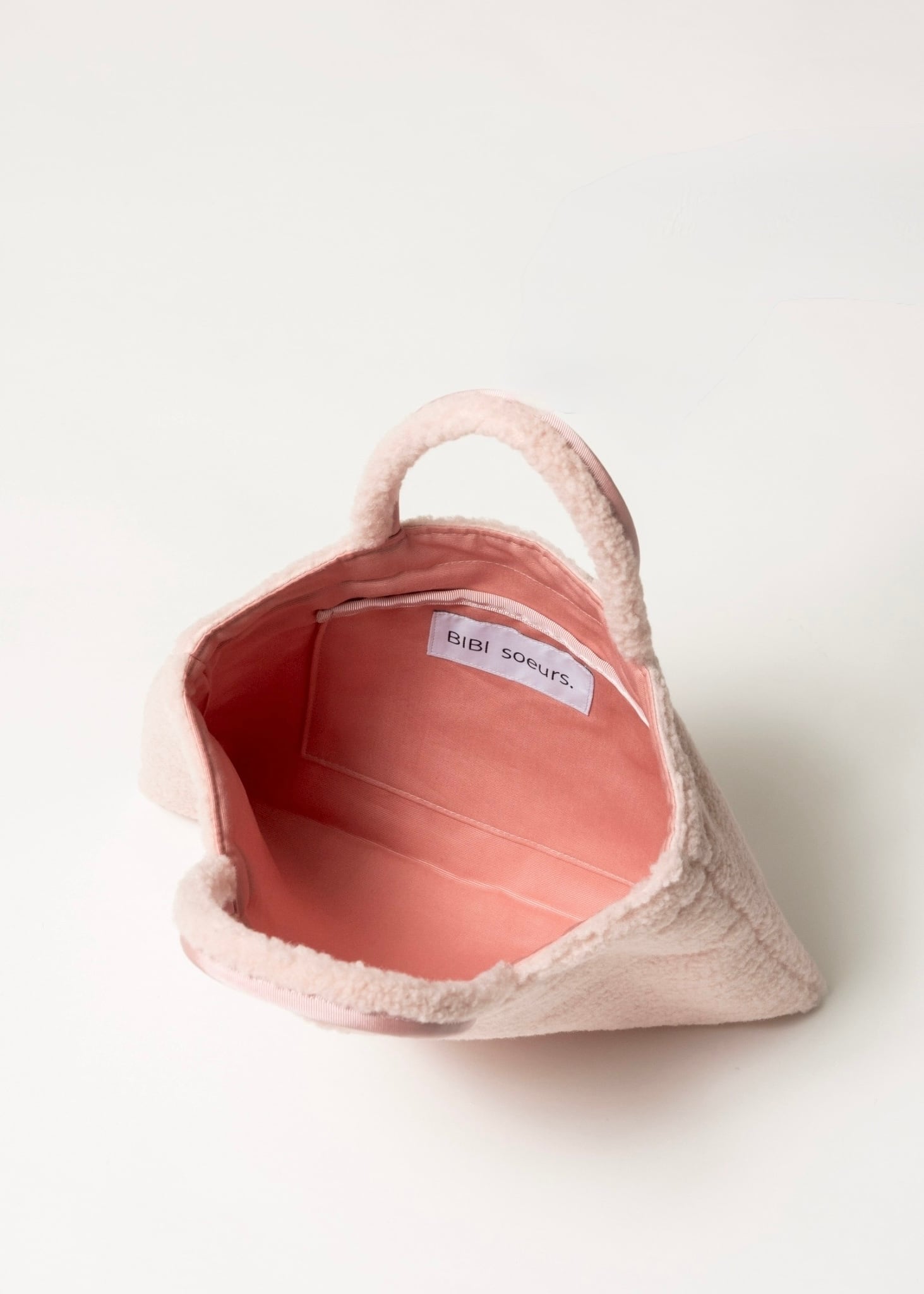 取手には艶のあるグログランパイピングでアクセントを。ちらっと見えるインナーカラーはライトピンク。適度な厚みとハリのある上質なグログラン生地です。