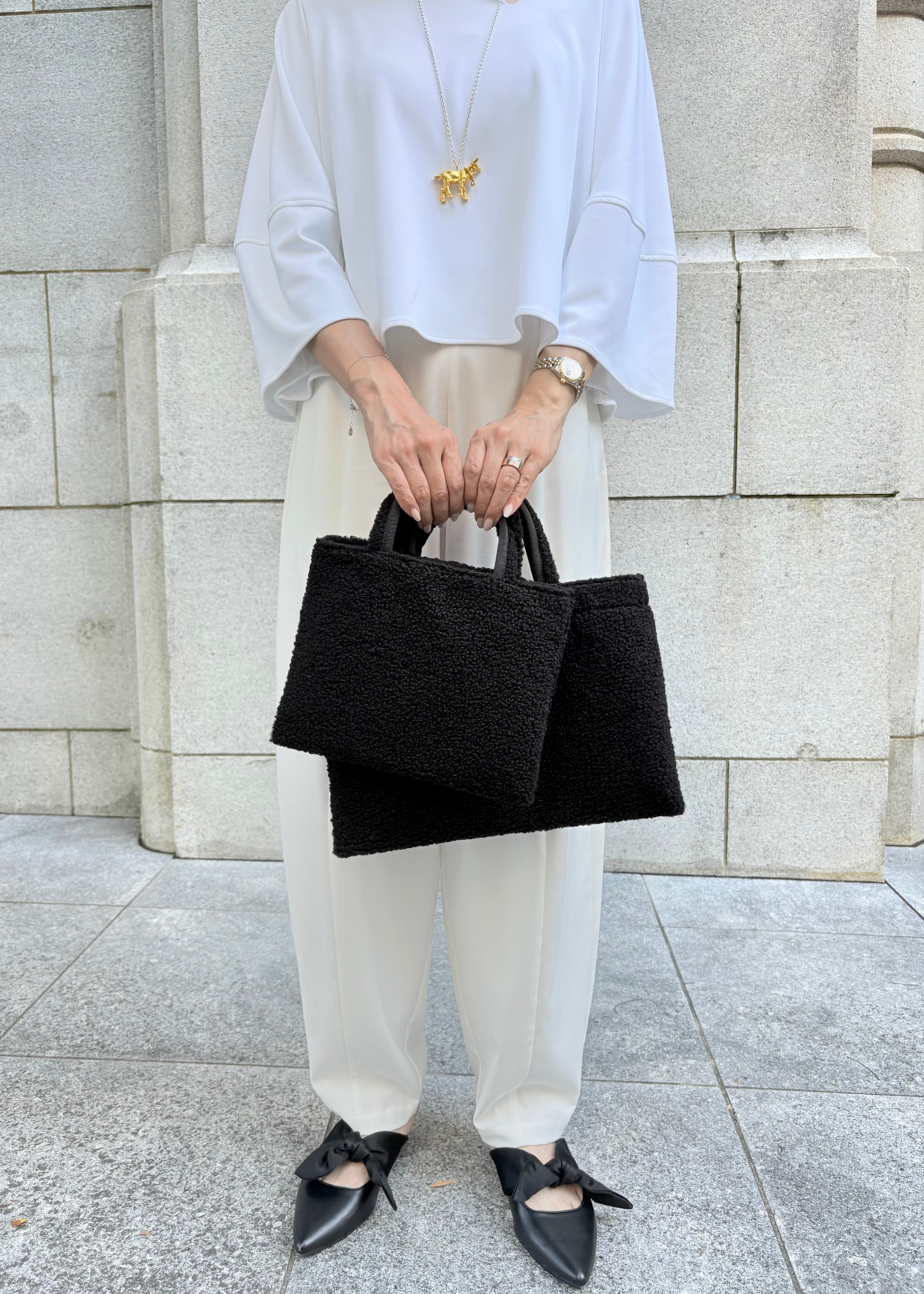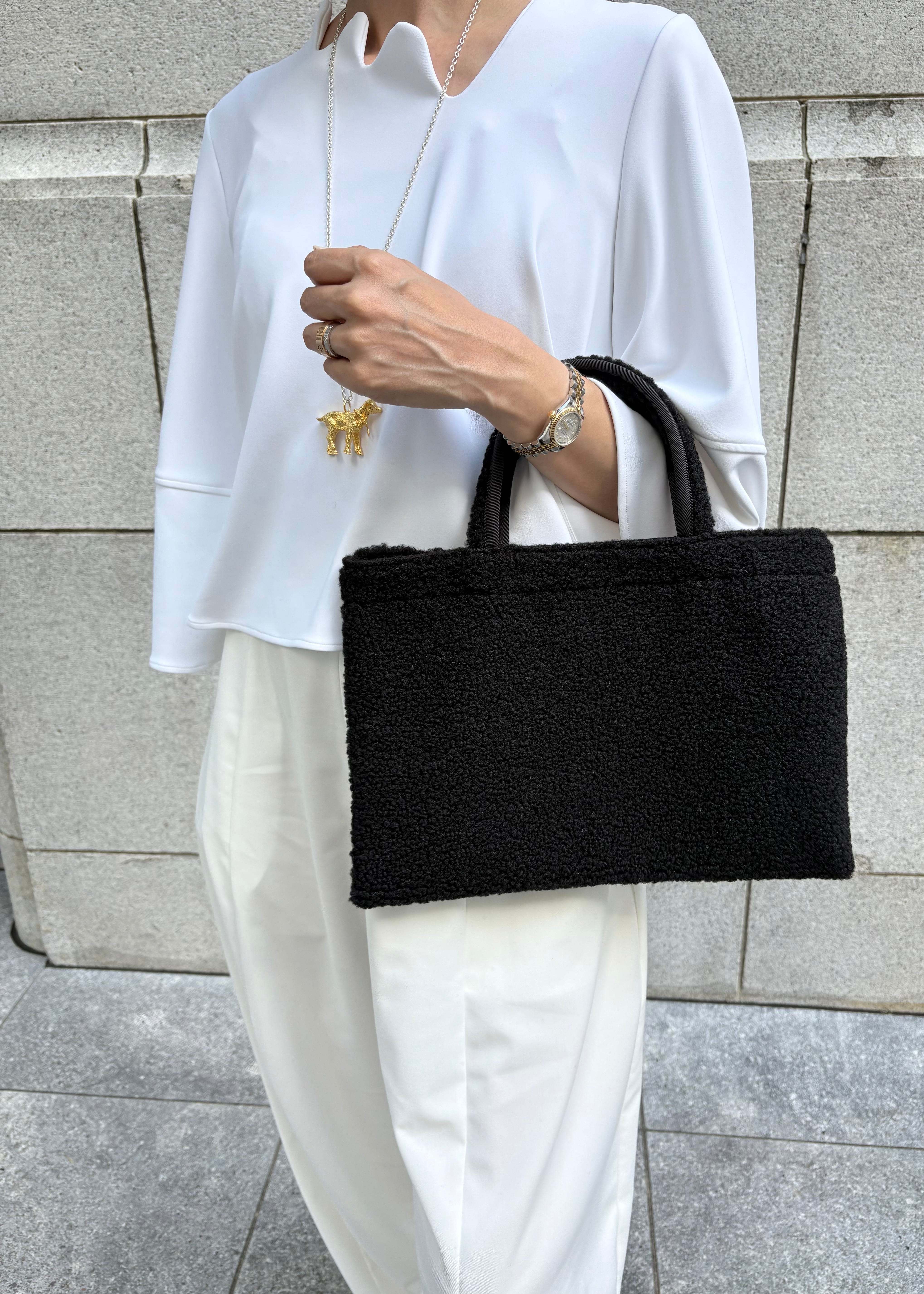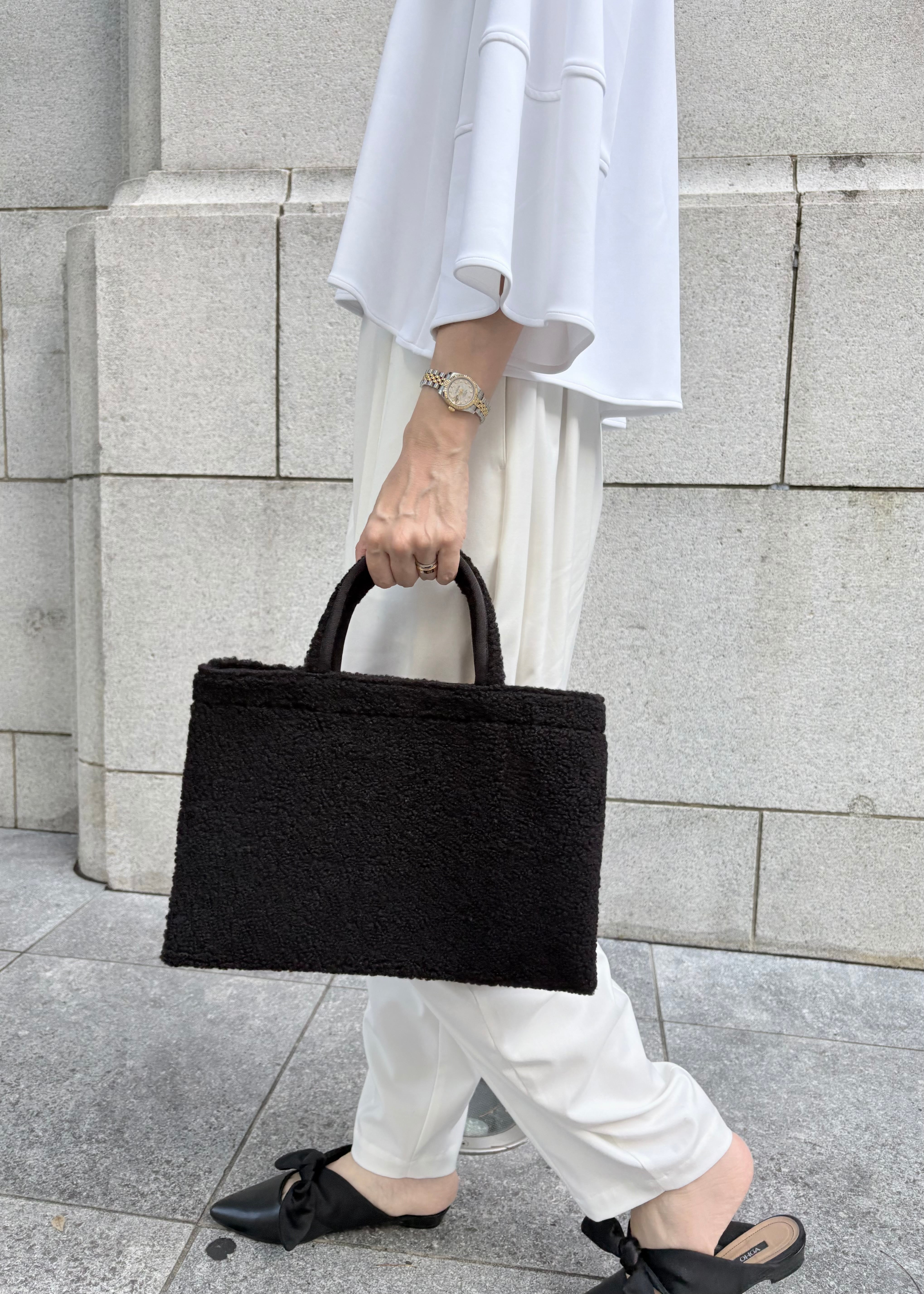 存在感のある愛らしいふわもこボア。表情豊かなボアファブリックは、リラックス感と華やかさを兼ね備え、投入するだけで秋冬コーデを完成させてくれます。どんなスタイリングにも溶け込むブラックボアはお気に入りの小物とも相性抜群。