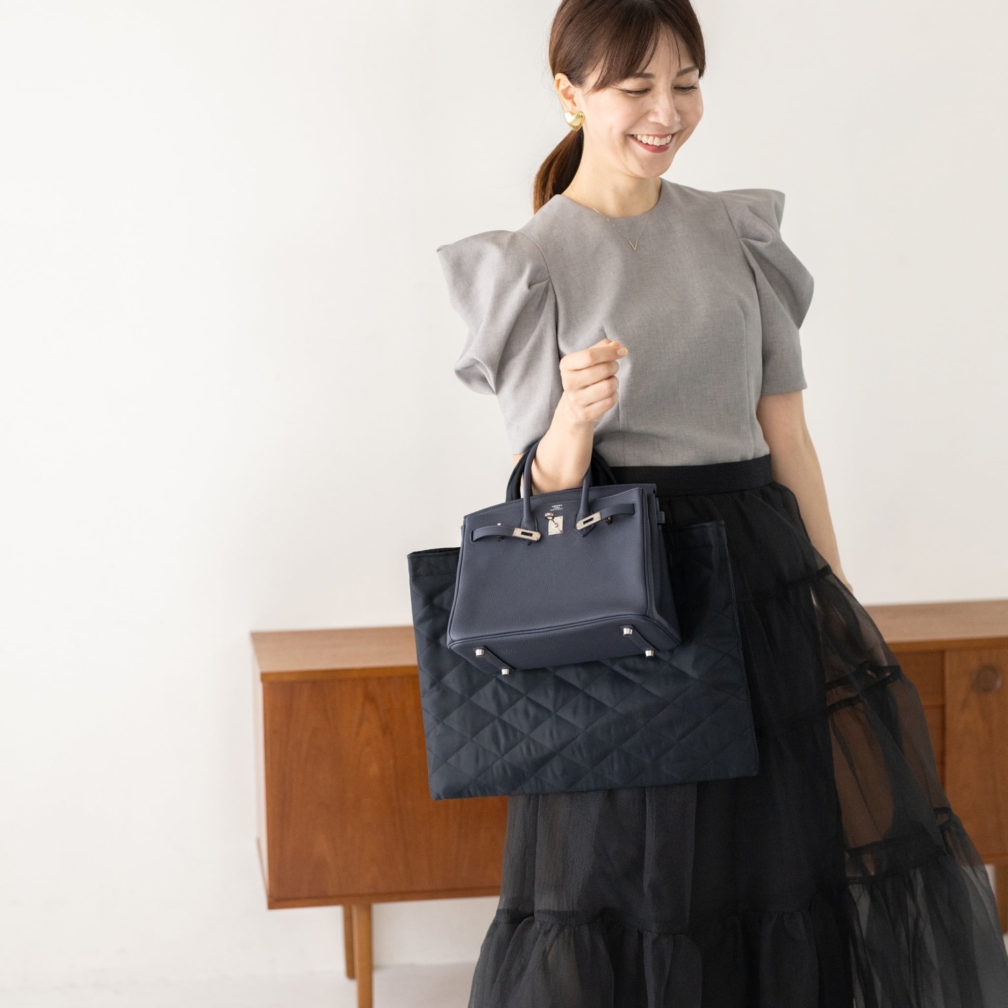 BIBI soeurs.オリジナル製法で型崩れしにくく、ビジネスシーンやお子様とのお出かけまで使える1つは持っておきたいラージサイズのキルティングbagです。