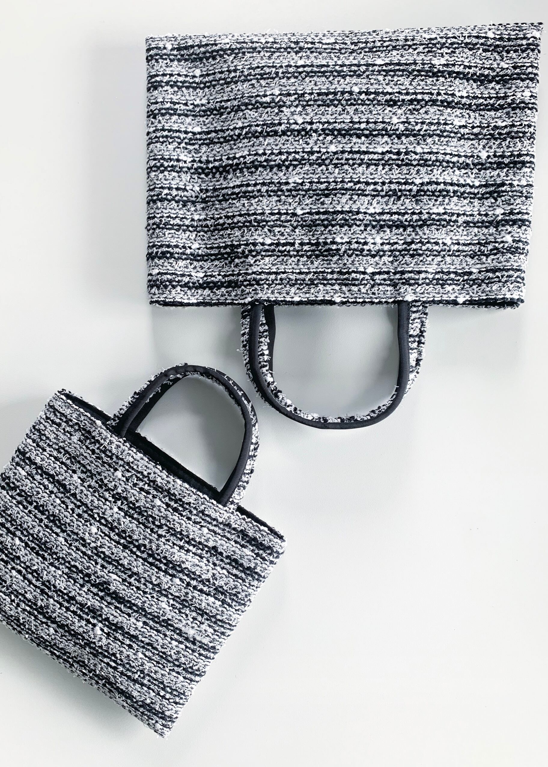写真はサンプル品や実際に私物を入れ使用しているものを撮影しているため実物とは加工、縫製、タグ位置、サイズ等が若干異なる場合もございます。また、ツイード生地の特性上使用にあたりほつれなど生じる場合がございます。撮影時の光の加減や使用する生地部分の違いでデザインや色味が多少異なって見える場合もございます。予めご了承ください。