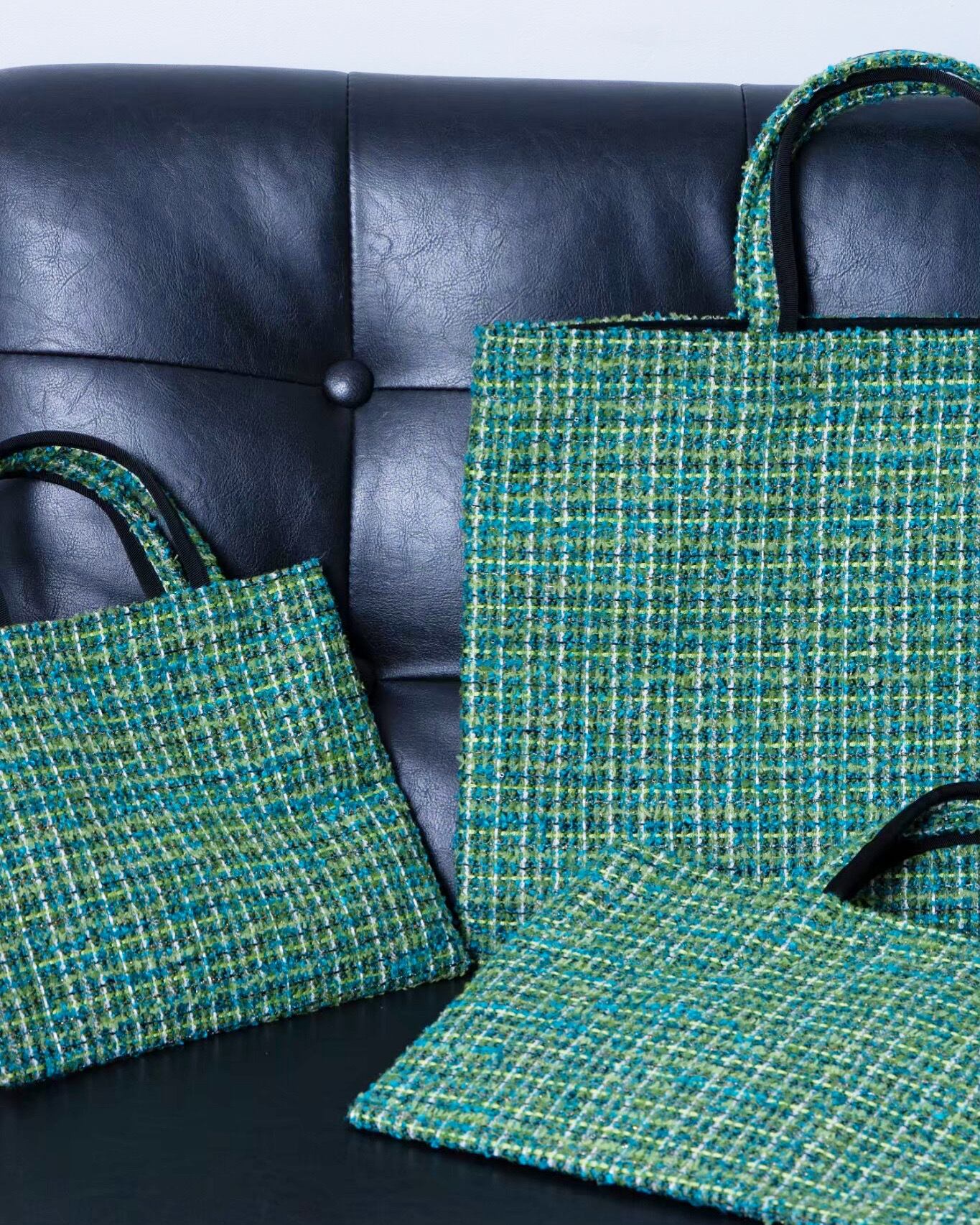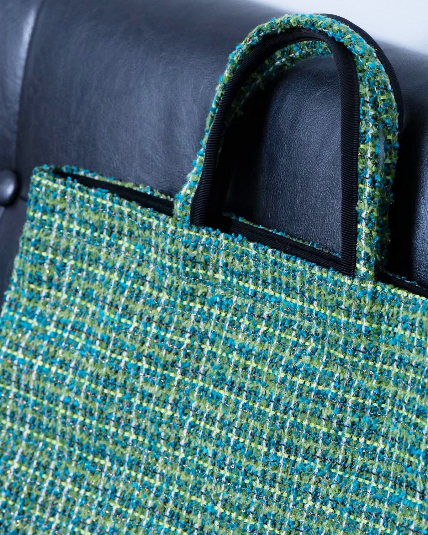 写真はサンプル品や実際に私物を入れ使用しているものを撮影しているため実物とは加工、縫製、タグ位置、サイズ等が若干異なる場合もございます。また、ツイード生地の特性上使用にあたりほつれなど生じる場合がございます。撮影時の光の加減や使用する生地部分の違いでデザインや色味が多少異なって見える場合もございます。予めご了承ください。