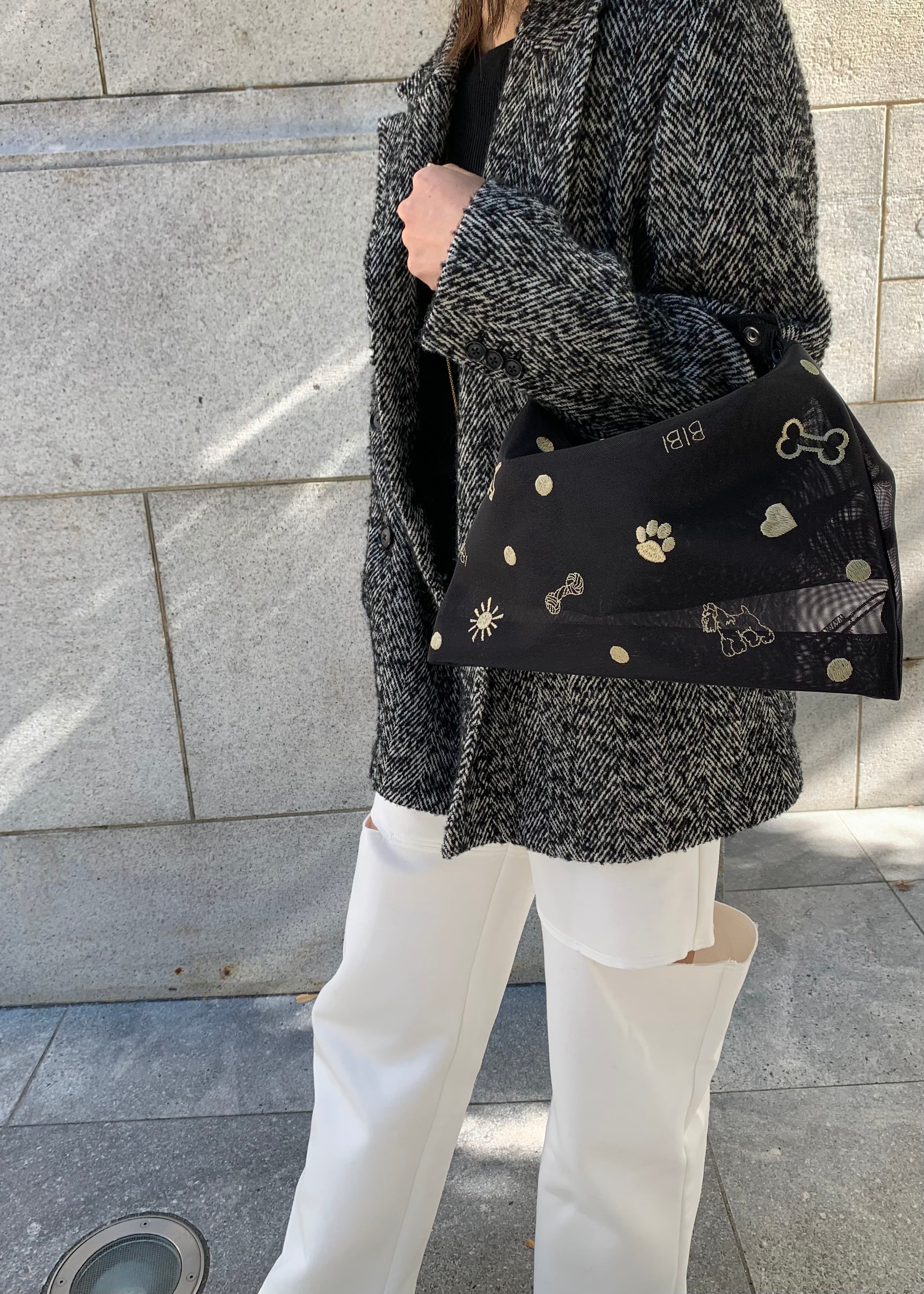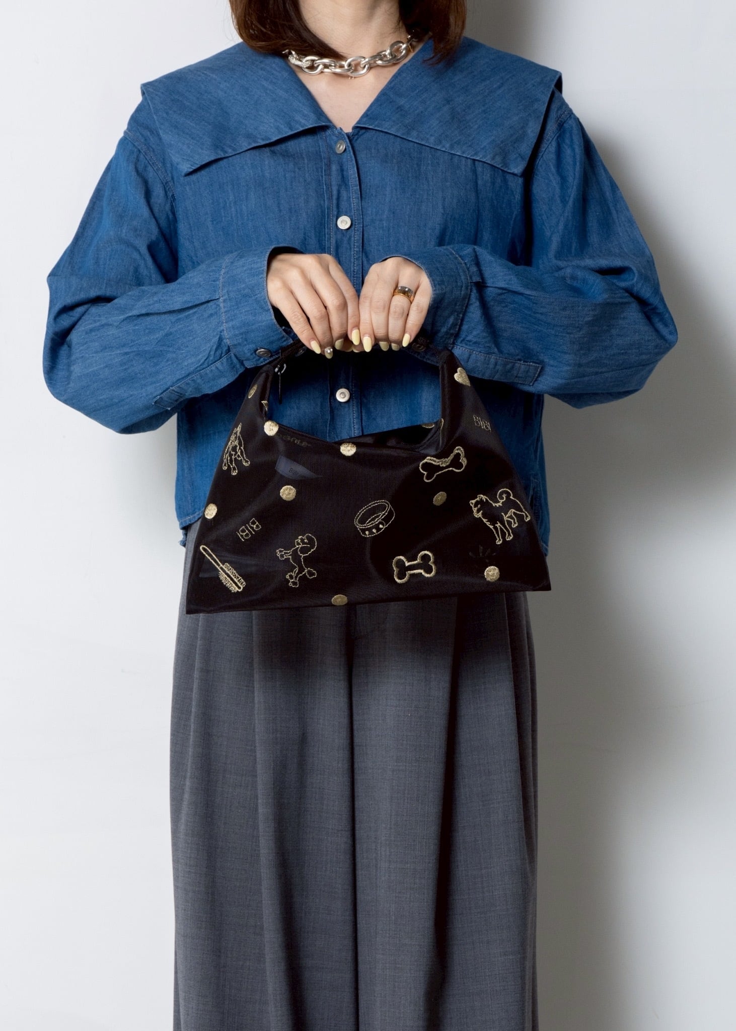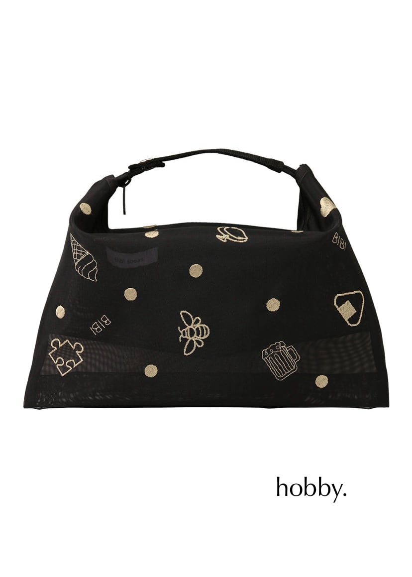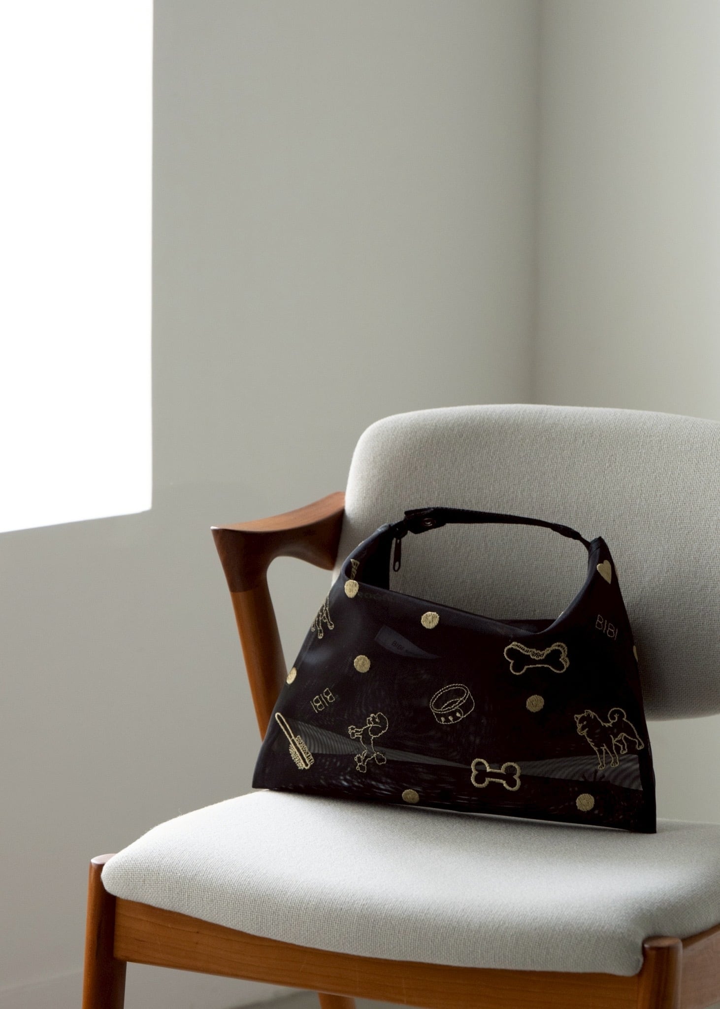 ファスナーは開け閉めもスムーズな質の高いものを採用。メインの刺繍のテーマはhobbyとdog。キュートで遊び心のきいたメッシュバッグはすぐ側にいるときめくものを集めて気分が上がるよう心を込めて。刺繍糸の使用量を増やし立体感とボリュームのある風合いを実現。