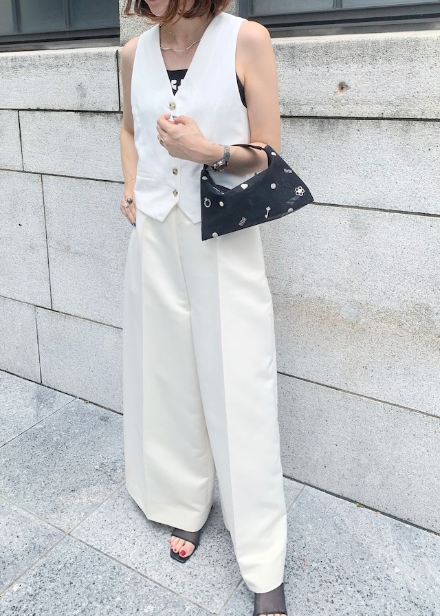 BIBI bag. “MIDDLE” tweed White ribbon 【納期】ご注文から1週間以内。 ※数量限定 ※一度にご注文された全ての商品が整い次第の発送となります。 ※日時、配送業者についてはご指定頂けません。 ※こちらの価格には消費税が含まれています。 Black×Whiteのモノトーン。ヒラヒラと可愛いリボンヤーンとモールがエッジをきかせてくれているファンシーtweedは、どんなスタイリングにも取り入れやすくエレガントにもかっこよくも持っていただけます。 取手にはブラックの艶のあるグログランパイピングでアクセントを。ちらっと見える裏地には適度な厚みとハリのある上質なグログラン生地を使用。 BIBI soeurs.オリジナル製法で型崩れしにくく、サブbagにはもちろん、メインとしても様になります。 使い勝手の良いMIDDLE はA4サイズ収納可。オケージョンシーンやお子様のLesson bagにも◎ マスクやスマホ、鍵などすぐに取り出したいアイテムを入れられる内ポケットあり。 【表地】ファンシーツイード (コットン31% アクリル21% ナイロン20% ポリエステル15% レーヨン13%) 【裏地】グログラン生地(コットン100%) 【size】 W35cm H25cm made in Japan. 【商品について】 写真はサンプル品や実際に私物を入れ使用しているものを撮影しているため実物とは加工、縫製、タグ位置、サイズ等が若干異なる場合もございます。また、ツイード生地の特性上使用にあたりほつれなど生じる場合がございます。撮影時の光の加減や使用する生地部分の違いでデザインや色味が多少異なって見える場合もございます。予めご了承ください。